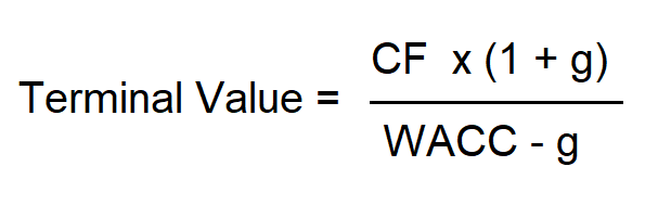 Terminal Valuelà giá trị đại diện cho Free Cash Flows của công ty cho những năm sau. Về cơ bản, đó là giới hạn của tổng các hạng số CF/(1+r)^n khi cho n chạy đến dương vô cực (với n > 5).